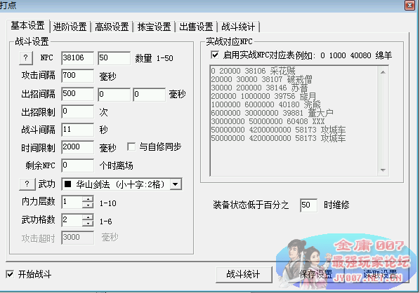 新号  刚进华山  基内 华山心法 华山剑法都是7     实战900   打点出现问题如图   设置如图。哪里的问题 该怎么解决  ?